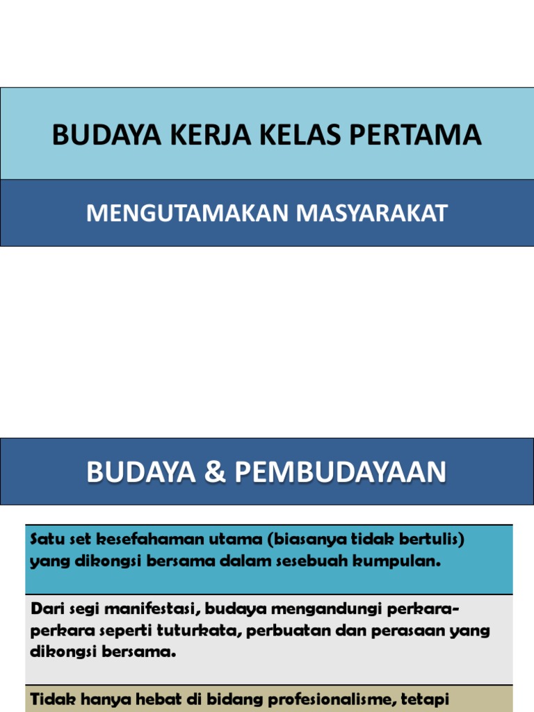 Budaya Kerja Kelas Pertama / Lahirnya 5 budaya kerja kementerian agama ri, untuk menjawab keinginannya yang ingin mengembalikan citra dan kepercayaan baik kementerian agama dimata publik dengan dibuktikan dengan kinerja yang baik.. Keragaman budaya indonesia, manfaat, ciri ciri, masalah akibat keragaman budaya, faktor penyebab, beserta gambar dan penjelasannya. Pemikiran kritis dan inovatif budaya kerja kelas pertama. Bagaikan kelompok atau klan yang hidup bersama, budaya satu ini menekankan aspek kolaborasi di mana anggotanya menganggap diri mereka sebagai satu keluarga besar yang saling terlibat satu sama lain. Yang pertama adalah dengan mengenali budaya lokal anda melalui memperbanyak bacaan anda tentang. Seni budaya merupakan suatu segala sesuatu yang diciptakan manusia tentang cara hidup berkembang secara berikut bospedia memberikan soal pg seni budaya kelas 11 sma/ma.