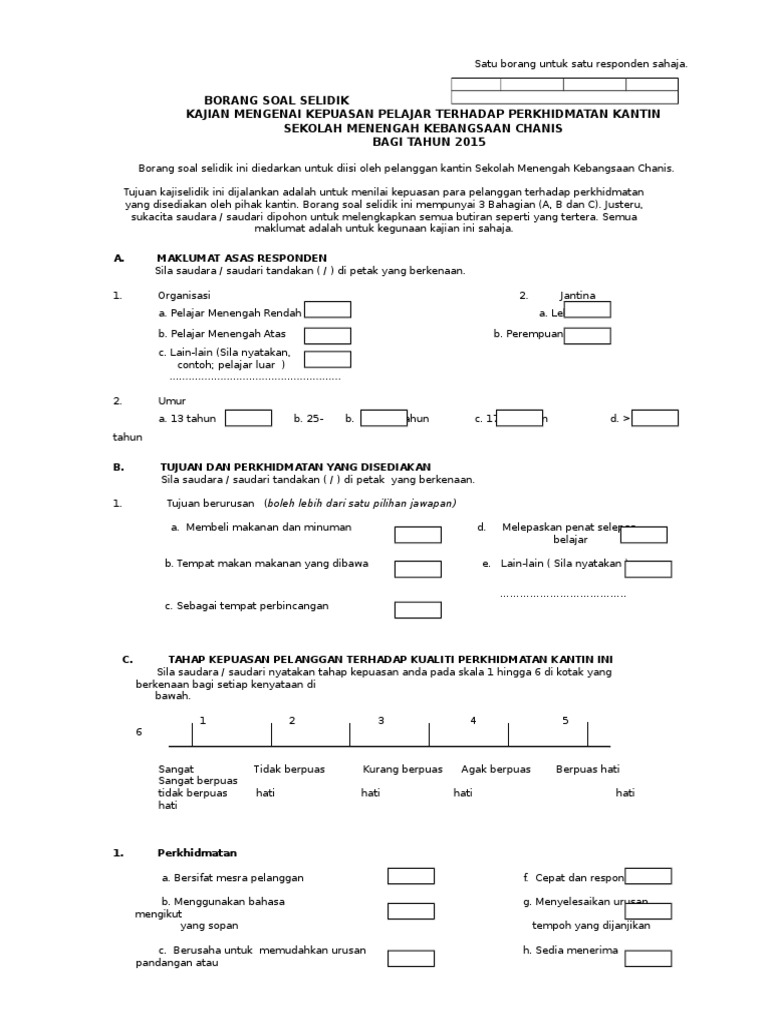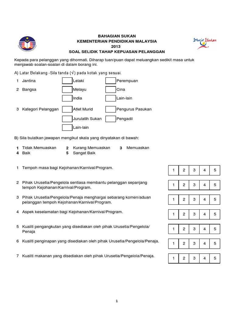 Borang Soal Selidik Kajian Kepuasan Pelanggan Kementerian Pelajaran Malaysia from imgv2-1-f.scribdassets.com Check spelling or type a new query. Maybe you would like to learn more about one of these? Contoh soalan kaji selidik kepuasan pelanggan. We did not find results for:
